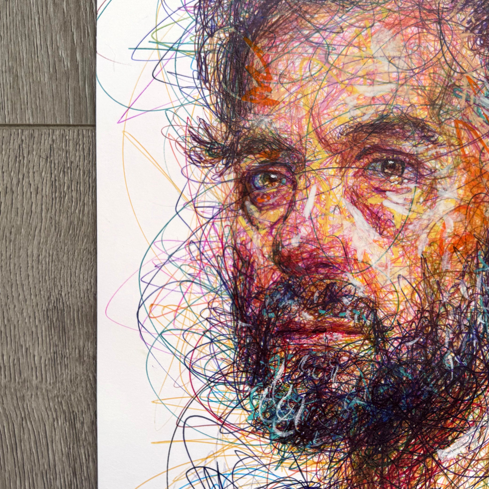 "Between the Lines" was created with ballpoint pen on heavy weight bristol paper.