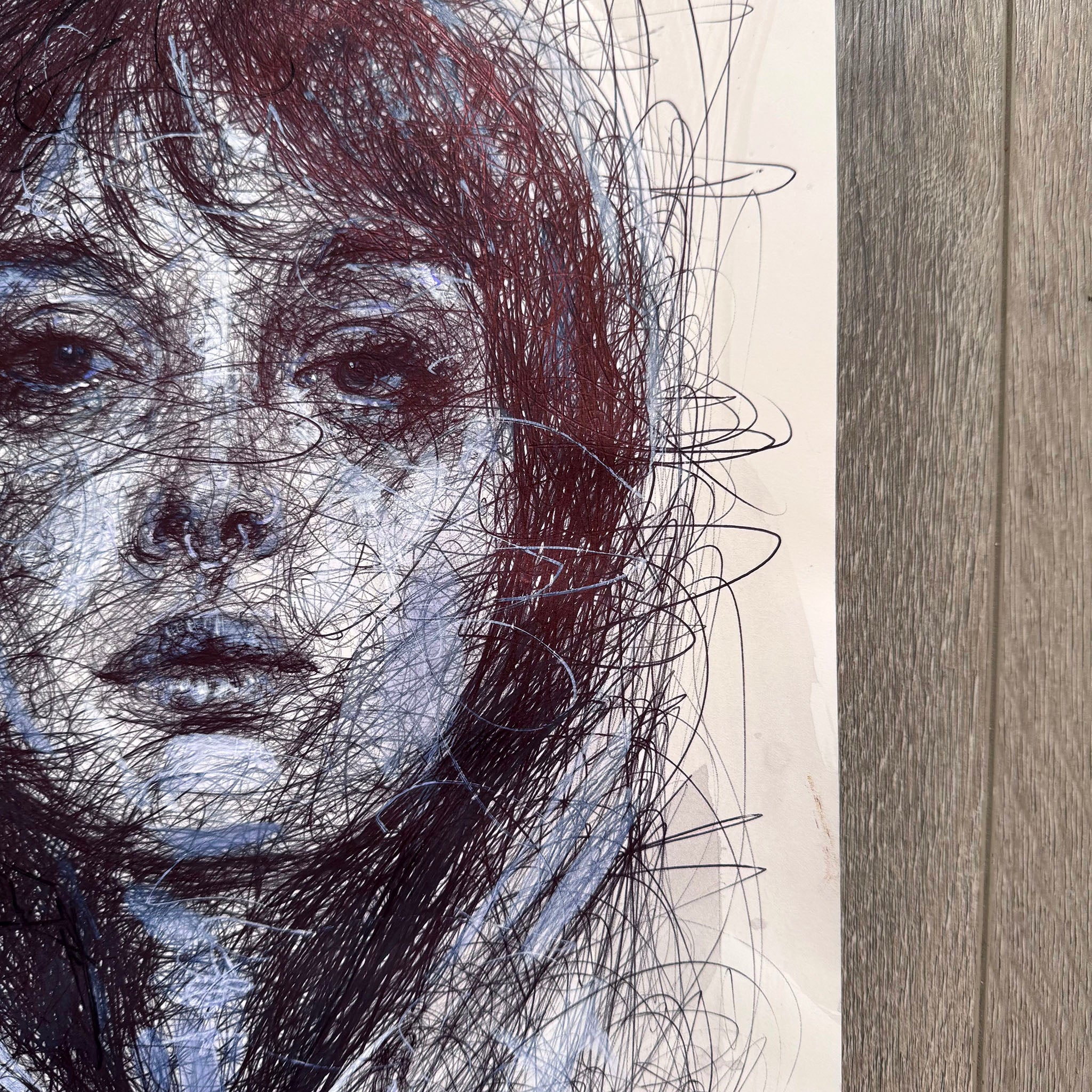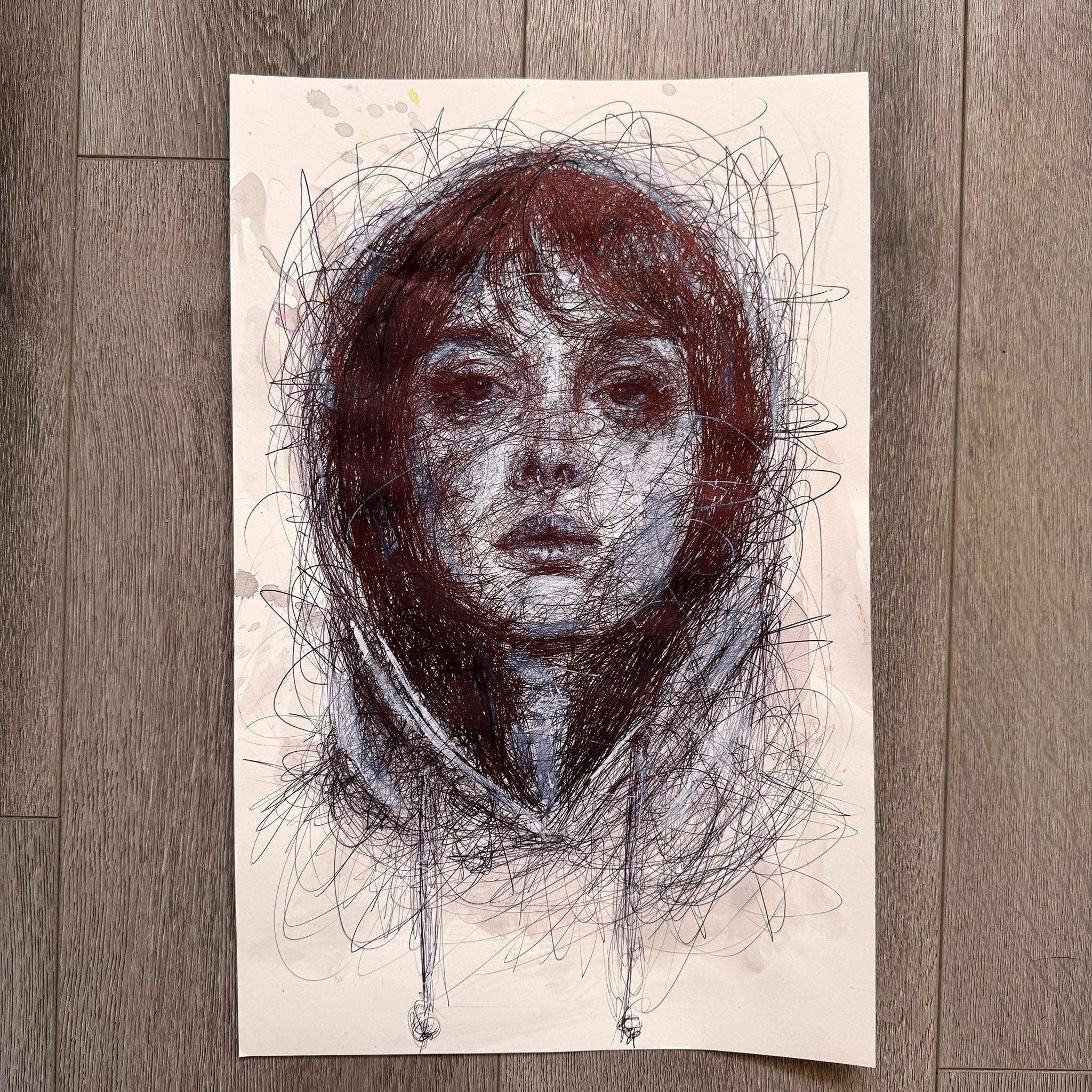 "Hoodie Girl" was created with ballpoint pen on heavy weight bristol paper.