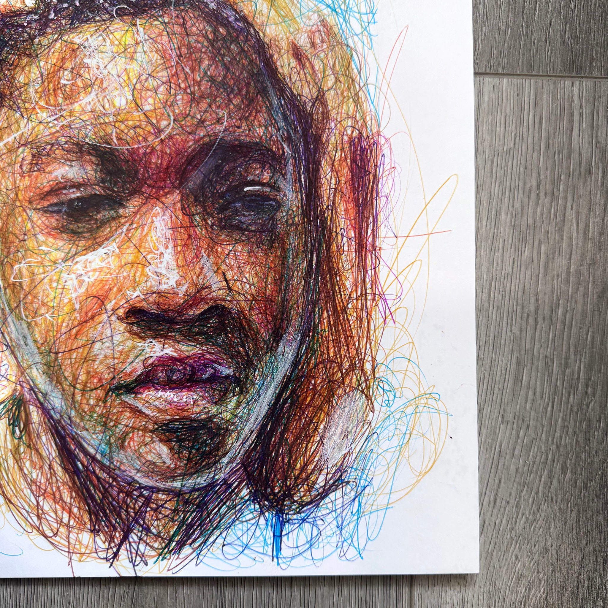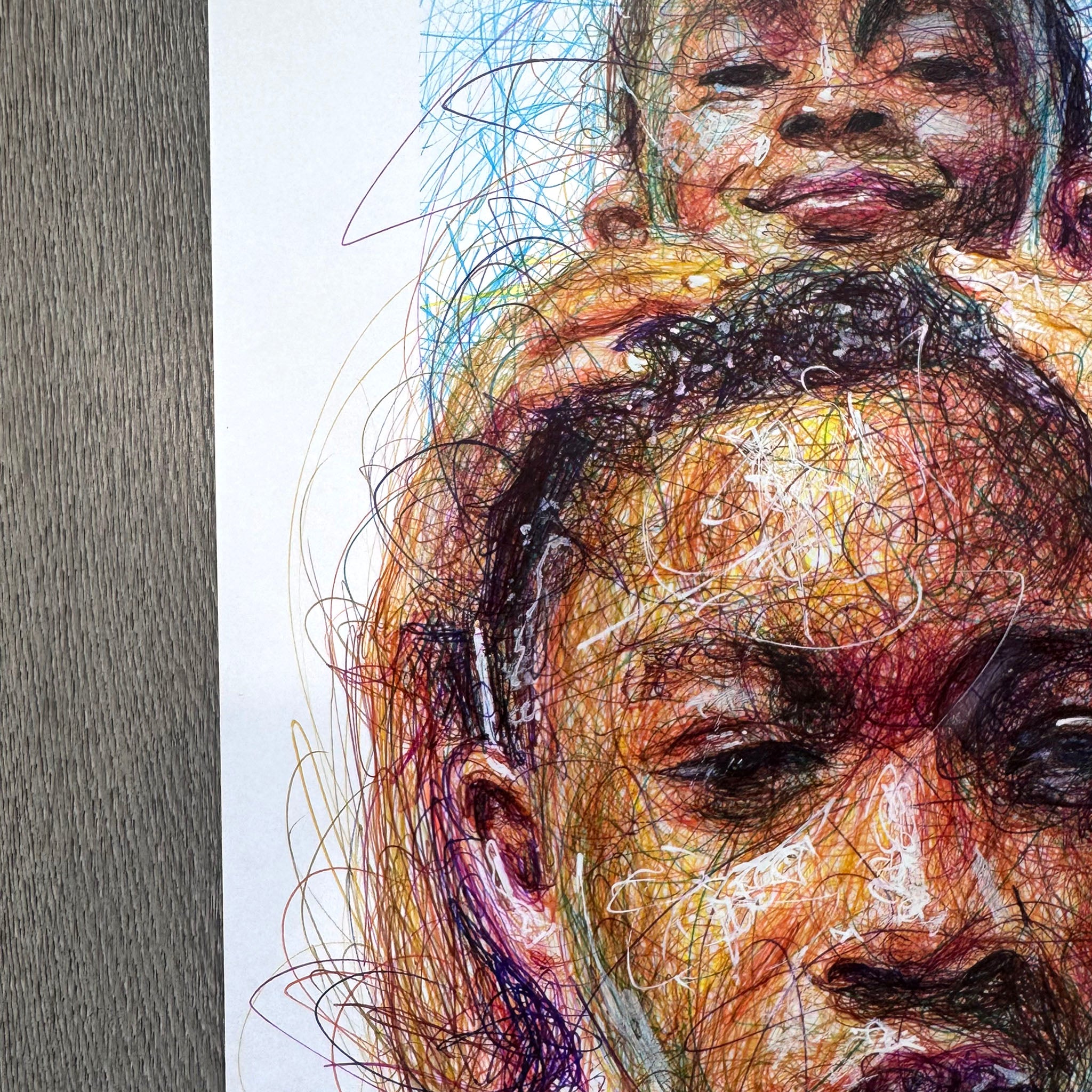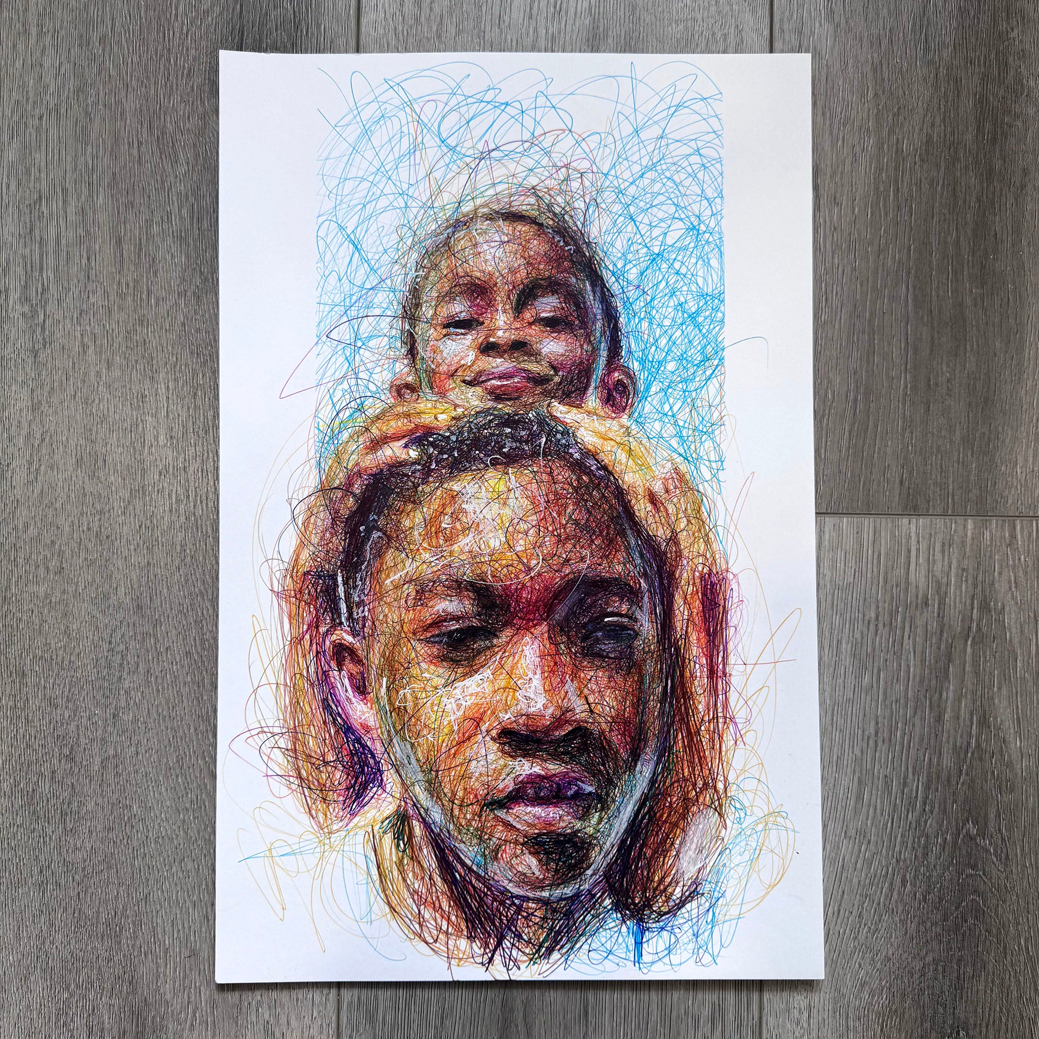 "Brotherly Love" was created with ballpoint pen on heavy weight bristol paper.