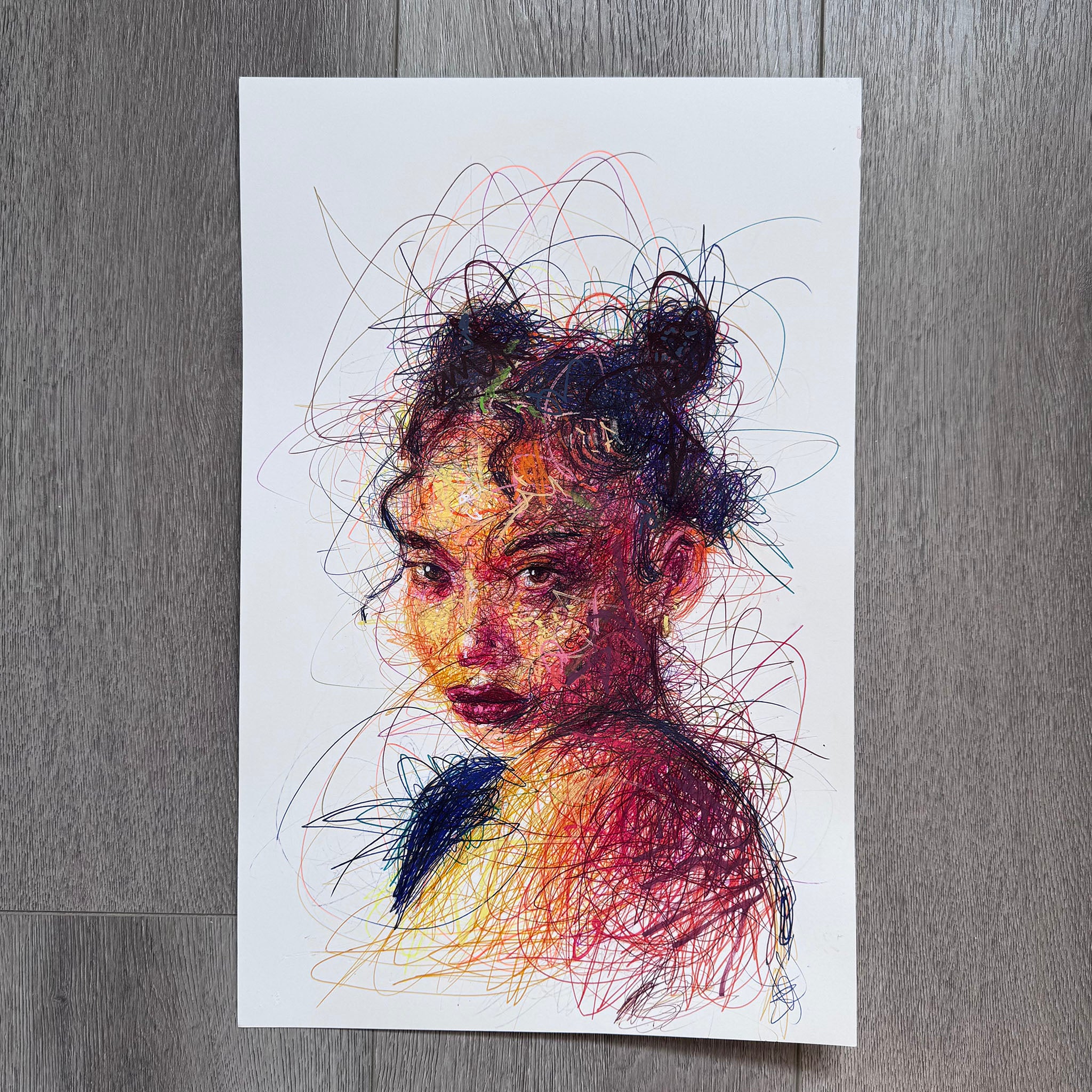 "Two" was created with ballpoint pen on heavy weight bristol paper.