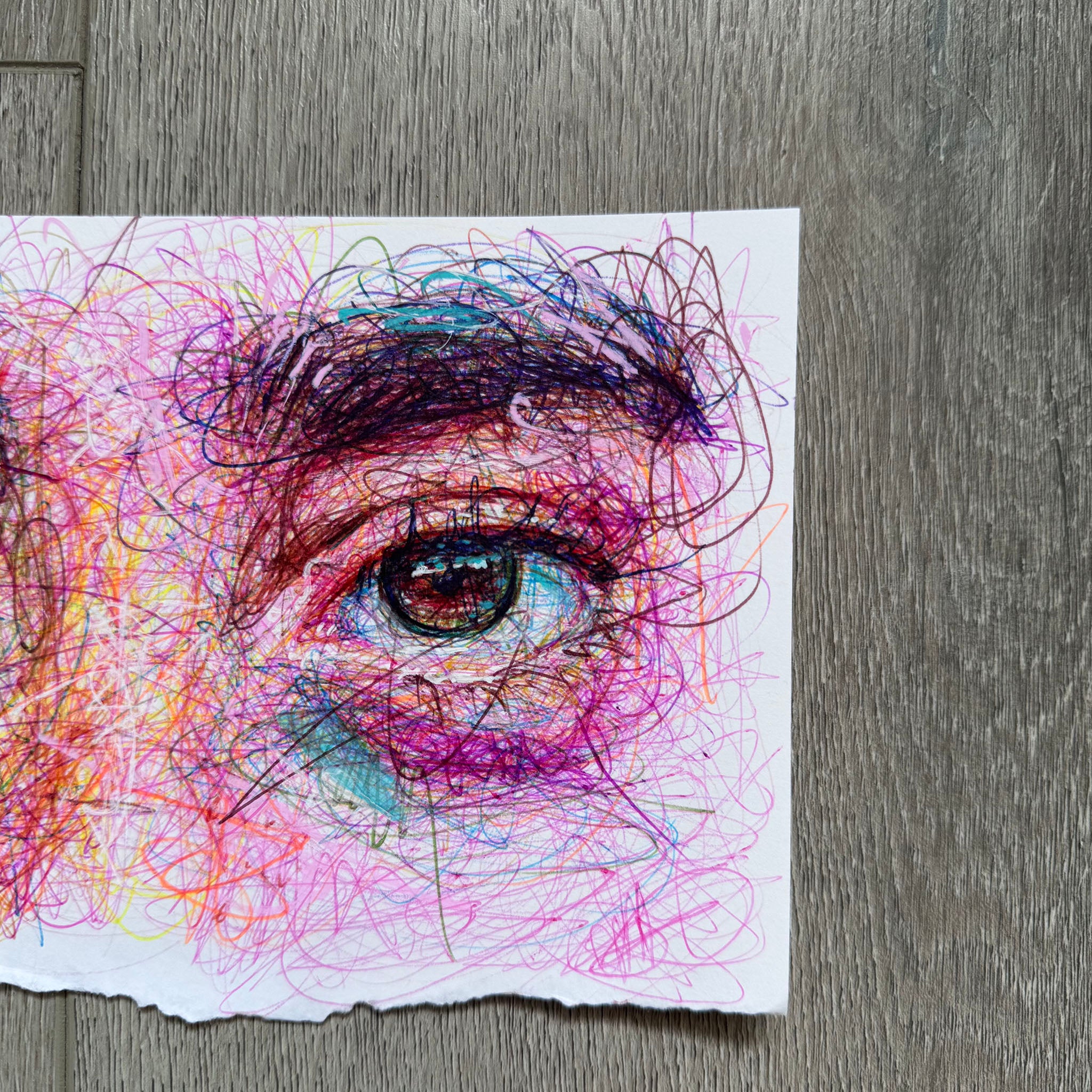 "Stare" was created with ballpoint pen on heavy weight bristol paper.
